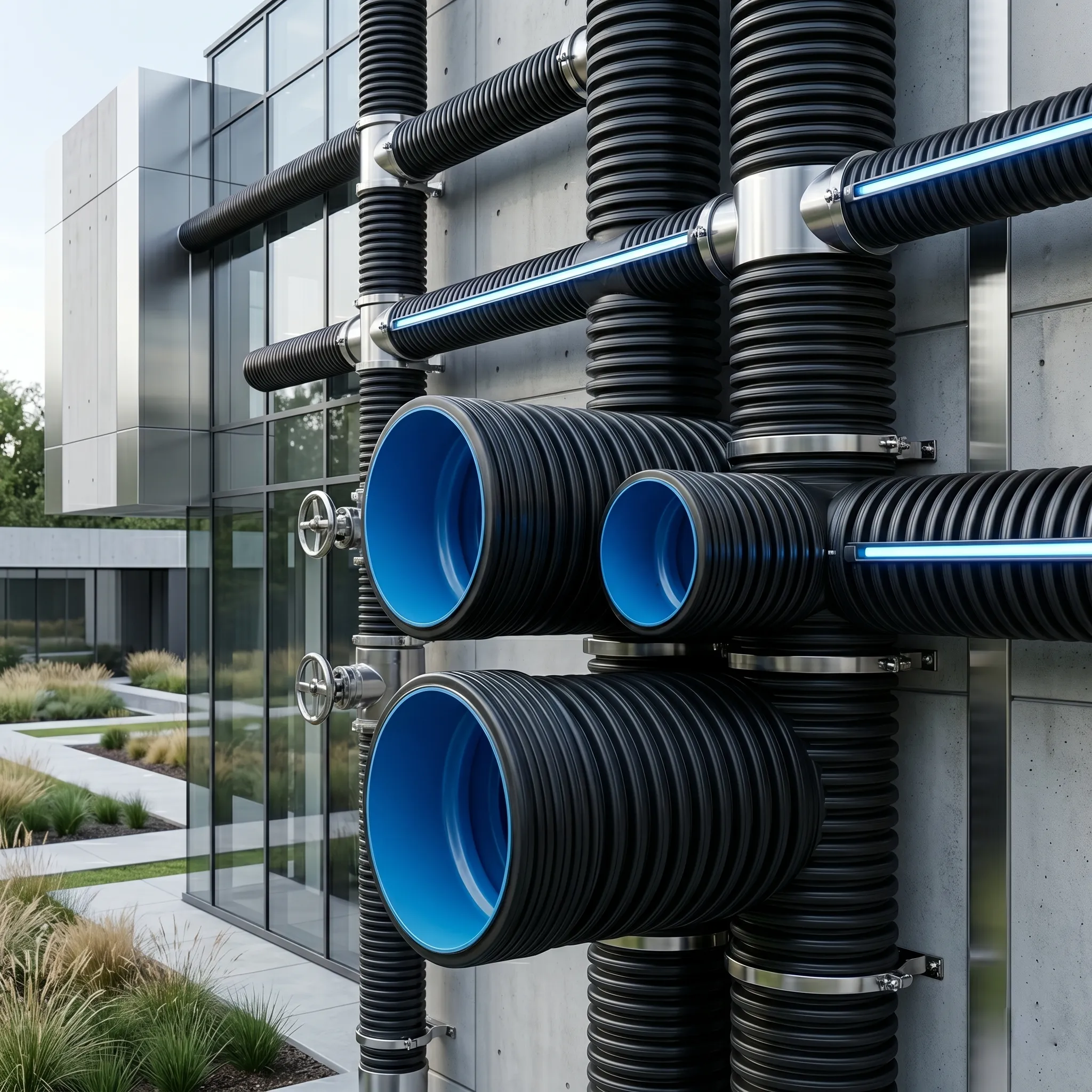 Üstün Yük Dayanımı: Dış kaburga tasarımı sayesinde yeraltı hareketlerine, trafik yüküne ve toprak baskısına karşı yüksek sızdırmazlık ve esneklik sunar (SN4, SN8, SN16 rijitlik sınıflarında üretilebilir).