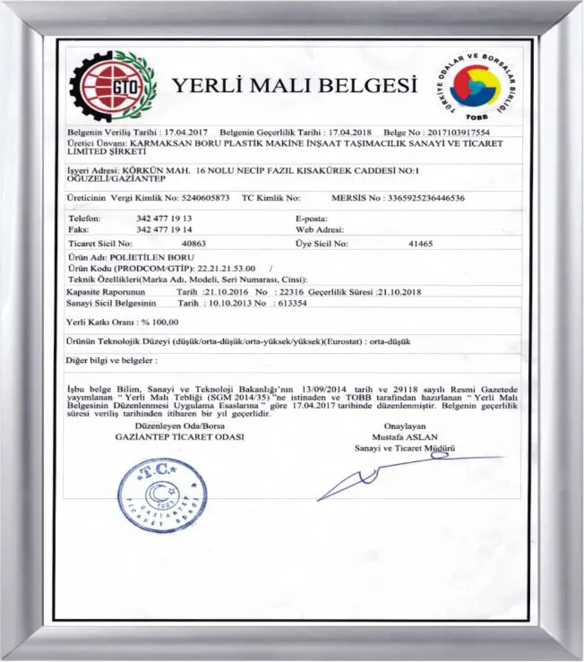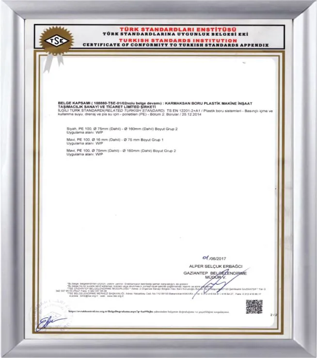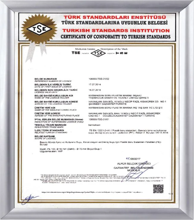Karmaksan Boru olarak, üretimimizin uluslararası standartlara uygunluğunu belgeleyen sertifikalarımız bulunmaktadır.